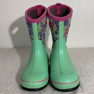 Bogs Classic Waterproof Green Floral Pull On Rubber Rain Boots Youth Size 4