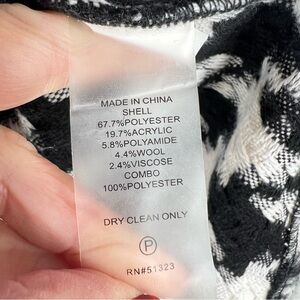 Women’s Size: XLarge: Pit/Pit:25”……Sleeve:20”……Top/Bottom;29”…….Vince Camuto Black/White Houndstooth Fuzzy Flannel With Faux Leather Trim, Oversized, , Button Down Front Shacket, Jacket. New with Tags. A…..929/021726…..tags# office wear, flannel, cozy, outerwear, houndstooth, oversized, Vince Camuto, weekend brunch