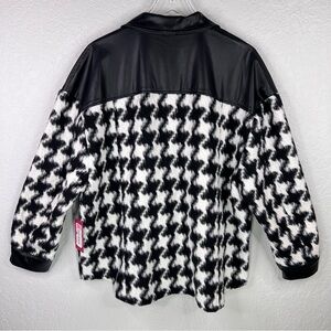 Vince Camuto Black/White Houndstooth Faux Leather Trim Button Down Shacket XL
