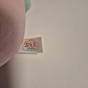 Spark Create Imagine unicorn plush toy features a round, squishable in a soft pink hue with contrasting mint green hooves and mane. This cuddly companion is finished with a small white horn and is perfect for imaginative play or as a decorative nursery accent.