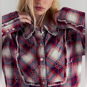 We The Free Georgia plaid embroidered button-down shirt.