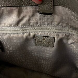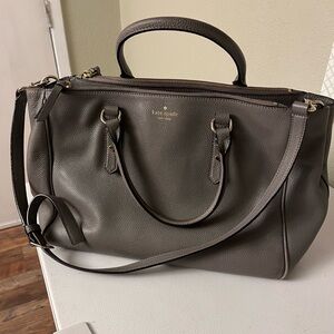 Gray leather Kate Spade bag. Very roomy with lots of sections. In good condition, but there is some wear on each bottom corner, so please see pics.
