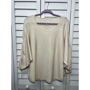 Max Studio Ruched Dolman Sleeve Scoop Neck Sweater Women's Size XL Cream