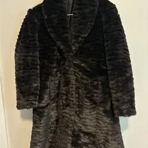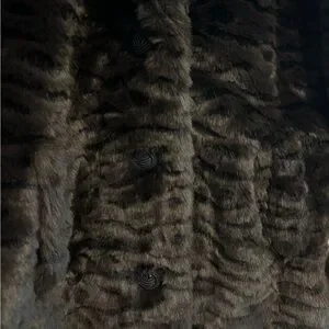 Vintage Grunge Winter Baddie Dark Brown Faux Fur Animal Print Streetwear Midi Whimsygoth Coat -Size Large