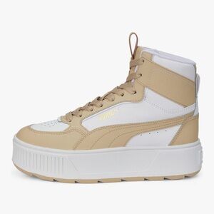Step up your style with Puma's chic high-top sneakers. Featuring a trendy tan and white design, these shoes offer both comfort and flair. Perfect for any casual outing.