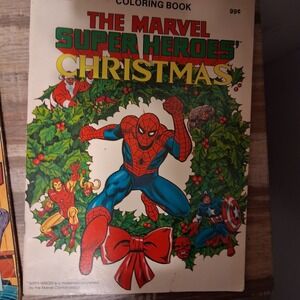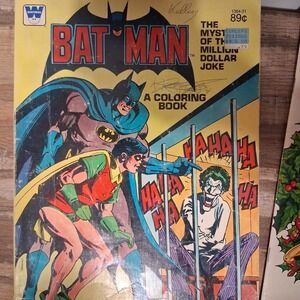 Marvel Christmas coloring book and Batman the Mystery of the Million Dollar Joke coloring book. Both are about 25% colored in. Still fun for collecting or using.
