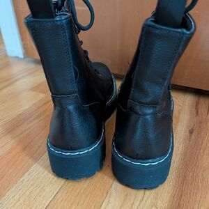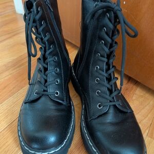 Chic black lace-up boots with sturdy soles. Ideal for a bold style. Worn once!