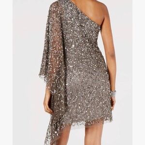 Dazzle in this Adrianna Papell dress. One-shoulder design with shimmering sequins. Ideal for glamorous events.