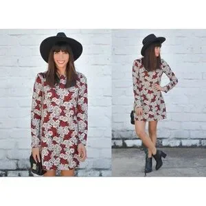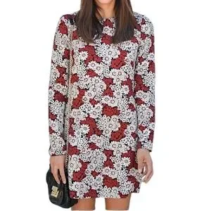 Zara Woman Red Black White Floral Daisy Mini Dress Size Medium Mod Retro Blogger Favorite