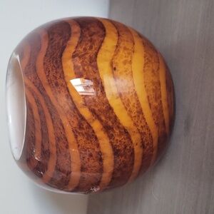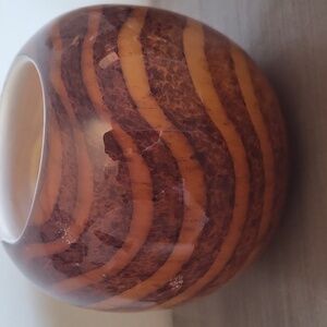 Vintage Tiger Stripe Art Glass Vase, Amber Blown Glass Bowl, Glass Sphere Vase,