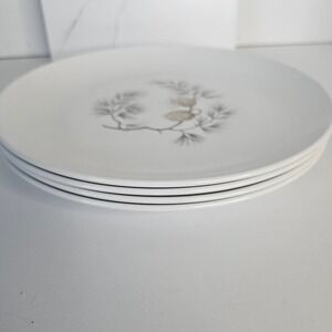 Vintage Melmac Pine Cone White Dinner Plates Set of 4 Mallo Ware 9"