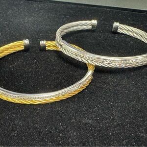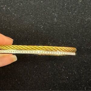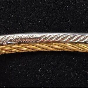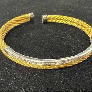 Phillip Charriol 18k Yellow Gold and Diamond Steel Cable Bracelet .19cm