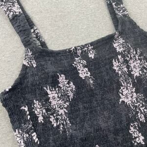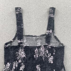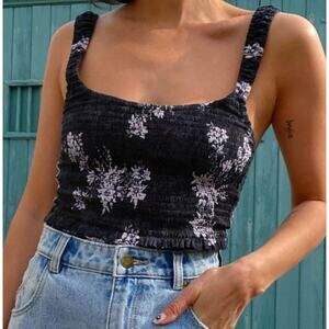 Free People Hannah Printed Cami Top L Black Purple Floral Smocked Ruched Tank