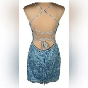 Shine in this elegant blue sequin dress, perfect for any special occasion.