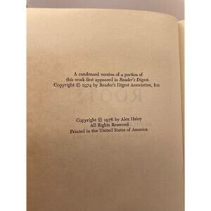 This vintage hardback book titled "ROOTS" by Alex Haley is a rare find for any book collector. The book, published in 1976 by Doubleday, and comes with a dust jacket. It is personalized and has no signs of wear and tear. The book is written in English and has special attributes that make it a valuable addition to any collection. The author, Alex Haley, is known for his historical works and this book is no exception. It covers a wide range of topics and subjects, making it a must-have for literature and fiction enthusiasts. The book is an original print and was manufactured in the United States.