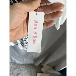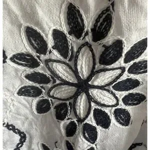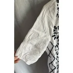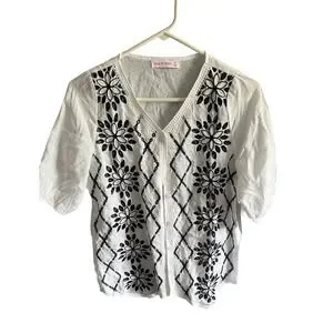 Ana & Rose White Black Embroidered Button Front V-Neck Top SP NEW