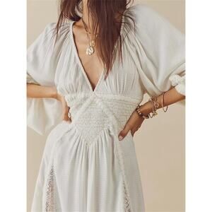 Free People Southwest Lace Maxi Dress Long Sleeve White Size Medium