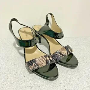 Ellen Tracy 9M black patent & snakeskin shoes 'Vinnie' sandals dressy high heels