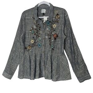New Anthropologie x HD in Paris Top Women's Large Embroidered Sequin Long Sleeve