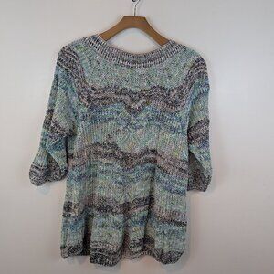 J. Jill Marled Open Knit Tunic Sweater Size 2X in Blue/Green