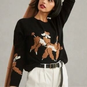 Stylish black sweater with brown and white poodle design. Perfect for casual wear.