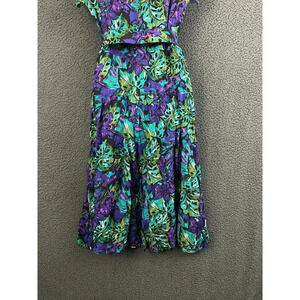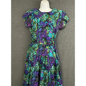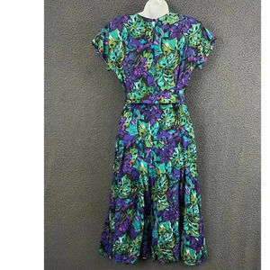 VTG Luci Pellini Tropical Floral Print Dress Sz 10 Regular 80's Belted Women's