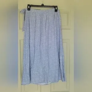 Add a touch of elegance to your wardrobe with this charming blue polka dot A-line wrap skirt. Perfect for any occasion.