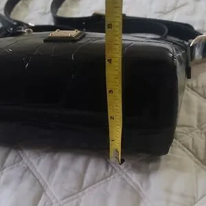 Chic black crossbody with croc-embossed texture. Gold-tone hardware adds elegance. Perfect for daily use.