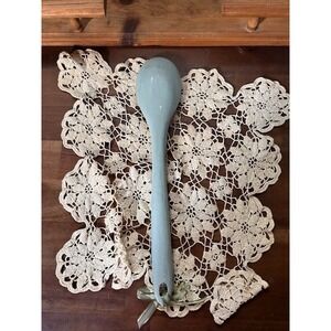 This Hand Painted in Duck Egg Blue with Transferware Florals Decorative Wood Spoon features a charming floral design, adding a touch of rustic elegance to any decor. Made from original and authentic materials, this hand painted and decorated spoon brings a unique and whimsical style to your kitchen or dining area. Perfect for collectors or those who appreciate the beauty of cottage core aesthetics, these spoons are a delightful addition to any home. Painted in a duck egg blue shade with a lovely green sheer ribbon and ready to hang. These pretty spoons are for decor purposes only.
