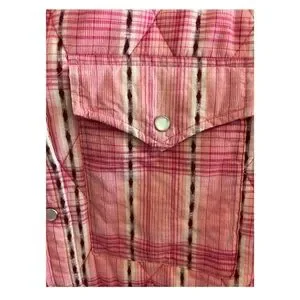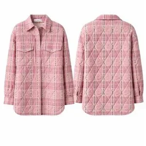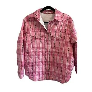Crafted from lightweight, 100% cotton, this piece features a bold pink plaid print with diamond quilting for added texture and warmth, classic snap-button front closure, snap chest pockets, and dropped shoulders.