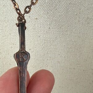 Elegant copper necklace featuring a unique pendant design. Perfect for adding a touch of vintage charm.