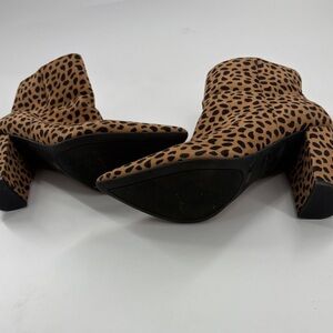 Bamboo Women’s Leopard Print Ankle Booties Heels Pointed Toe Side Zip Size 7