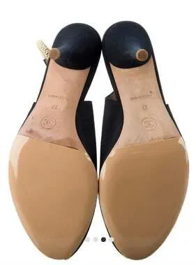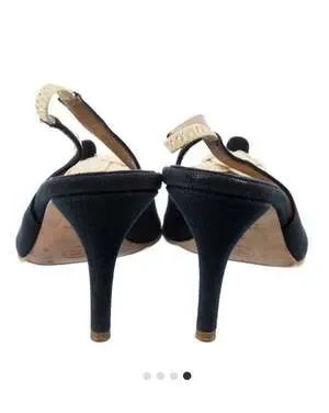 Vintage Chanel Black Canvas Camellia Flower Slingback Heels