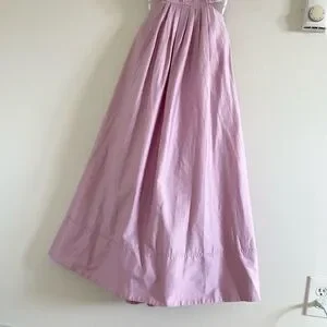 Beautiful Aje Frequency midi dress in a soft, feminine pink hue. This structured cotton dress features a flattering square neckline, wide straps, sculpted bodice, side pockets, and statement side cutouts that highlight the waist. The full, gathered midi skirt creates a romantic silhouette with gorgeous movement, making it perfect for weddings, garden parties, bridal events, or special occasions. Crisp 100% cotton fabrication gives it structure while still feeling breathable and comfortable. A standout designer piece with timeless elegance and modern edge.