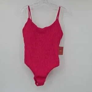 Stylish one-piece swimsuit by Andie. Features a vibrant pink color. Textured fabric with thin straps. brand new with tag beautiful color size L. You have a question don't hesitate to ask.
