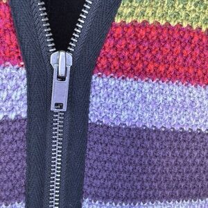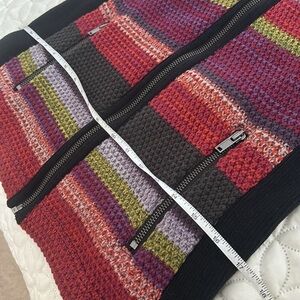 Colorful, color block woven front vest that has front zippers and stretch side panels. Two front zippered pockets. EUC.