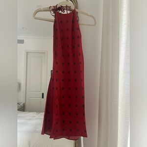Reformation Jennis Silk Red and Black Polka Dot Dress