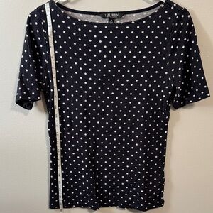 Ralph Lauren Navy and White Polka Dot Short Sleeve Top