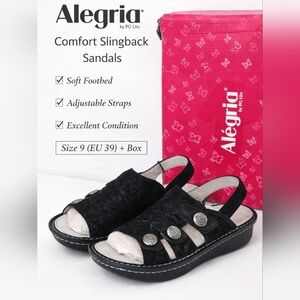 Alegria Julee Black Comfort Sandals Size 9 EU 39 Adjustable Straps