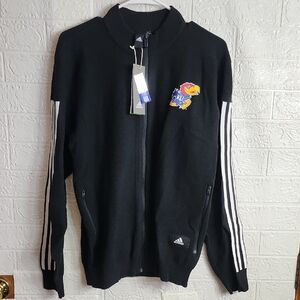 Adidas Black Jacket with Colorful Logo and White Stripes KU Jayhawks