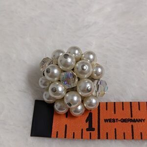 vintage circa 1950's faux pearl clip earrings with A/B Crystal Bead Accents