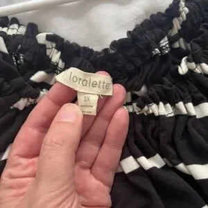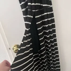 Loralette Maxi Dress Black White Stripe Front Slit 3X Plus Size