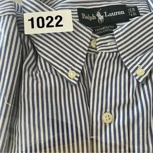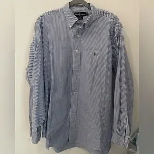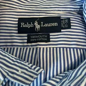 Ralph Lauren Mens •Dress Shirt •Button Up •Blue Striped Cotton Yarmouth 17-36