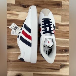 Adidas Women’s 8.5 Men's 7.5 Sneakers in White with Red and Navy Stripes