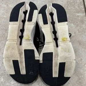 Sleek black sneakers with white soles. Ideal for running and casual outings. Lightweight and comfortable design.