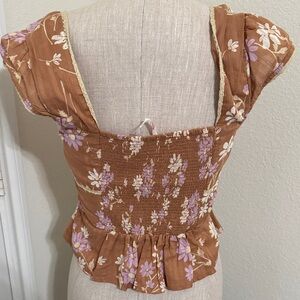 Free People Brown Floral Cap Sleeve Blouse