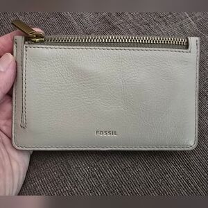 Fossil Beige Leather Zip Card Holder Wallet