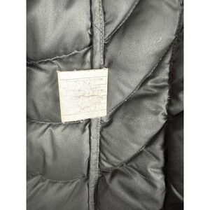 There is also light surface wear and minor lint/fuzzing throughout, typical of a pre-owned nylon shell. No major seam separation was observed. Zipper and snap hardware remain functional. Writing on the Brand tag and one of the inner tags is unreadable from washing/wear.