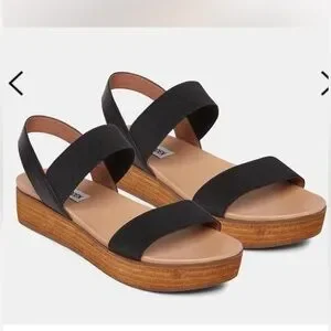 1” platform, excellent condition, black straps with wooden sole and platform. Perfect for spring and summer
