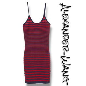 Alexander Wang Engineered Stripe Tank Dress Blue Orange Knit Bodycon Womens XS
